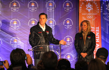 At the ice show, Romney also expressed gratitude to Lisa Eccles and her father, Spencer, a longtime leader of Salt Lake City's Olympic campaigns. Their family foundation contributed $8 million to the "Look of the Games" and the caldron that burned over the University of Utah's Rice-Eccles Stadium for the 17 days of the Olympics and, a month later, at the Paralympics.