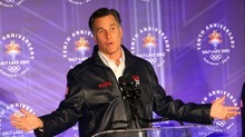 Loud ovations greeted him as he was whisked on stage for two public speeches, the first to the Salt Lake Organizing Committee team he led that put on the highly acclaimed 2002 Winter Games, the second to a crowd that filled almost half of EnergySolutions Arena's seats for an ice show paying tribute to the Olympics.