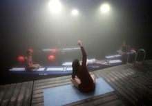 New York travelers Joanne Kellner and her two children, Dani, 17, and Jake, 15, decided to take the one-hour paddleboard yoga experience after spending the previous day skiing. "You have to stay focused," said Kellner. "You have to be mindful of what you are doing. The board is slippery."