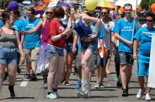 "It's great that we have this day to laugh and to celebrate, but the work that needs to be done is serious and it's happening right now," said Leah Weisgal, a community organizer with Planned Parenthood. "It's important not just to be out celebrating today but to make sure that you're turning out tomorrow for all of our family in the movement especially our queer brothers and sisters of color."