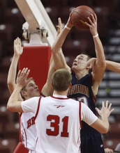 Bountiful's Dain Murdock scores. Bountiful vs. Herriman, 4A High School Basketball Championships Wednesday, February 29, 2012 at the Maverik Center in West Valley City, Utah.
