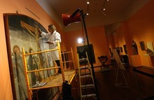 Utah Museum of Fine Arts director Gretchen Dietrich said Fischer worked steadily from 8 a.m. to 4 p.m. over three months. She stabilized the backing of the fresco, then painstakingly swabbed the grime from its time-worn surface. Where flecks of paint had chipped away, she matched pigments, then added color with meticulous care.