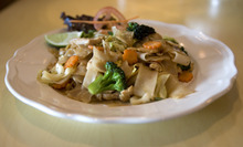 Pad him ma parn ($9.95) featured tough, dry pork but otherwise delivered refreshing bites of cashews, water chestnuts, pineapple, onions, bell peppers and dried chiles. Pad see-ew ($9.95) brought together wide rice noodles and a tangy sweet black bean sauce mixed with vegetables and scrambled egg but the beef version was overdone. The squid pieces in the seafood mix of our green curry ($9.95) were mushy and nearly unidentifiable while the shrimp was rubbery. Even the vegetables failed to retain any crunch.