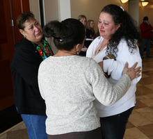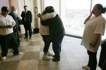 The two embraced as Fernandez consoled the mother of her son's murderer.