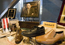 A display of photographs and other memorabilia of Richard Wirick's sits on display during a memorial service for him at the Gallivan Hall at Gallivan Plaza in Salt Lake City on March 8, 2012.