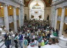 More than 1,500 Girl Scouts, their families, friends, showed up at the Capitol to celebrate the Girl Scouts' history by singing songs, performing a "flash mob," and enjoying Girl Scout birthday cupcakesand celebrate March 12th as Girl Scout day in Utah, Monday, March 12, 2012.