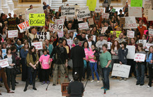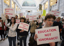 The alliance, a nonprofit, progressive group, organized the rally for Wednesday in hopes of persuading the governor to veto the bill, which lawmakers passed last week. The bill would allow school districts to drop sex education classes and require those that keep the courses to teach abstinence only, meaning instruction in contraception would not be allowed.