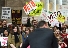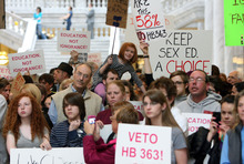 Hundreds of Utahns filled the state Capitol's cavernous Rotunda Wednesday afternoon, chanting and holding signs in hopes of sending one simple message to the governor: Veto sex-education bill HB363.