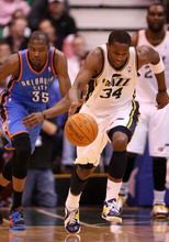 There was Utah's C.J. Miles and Gordon Hayward defensively pairing up, holding Durant to 6-of-22 shooting. The Jazz outscoring the Thunder 50-20 in the paint while forcing 20 OKC turnovers. Thirteen points in just 2 minutes and 47 seconds from Devin Harris, including three 3-pointers, which pushed Utah to a 14-point lead early during the third quarter.