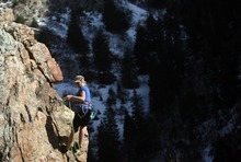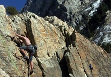 Sunny and warm weather will persist in the valley throughout the weekend. Climbers Sarah Benson and Lance Osborne take advantage of the balmy temps to get some outodoor climbing in on the Appendage in Provo.