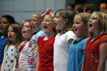 Third-graders at Falcon Ridge Elementary get ready for a flag presentation where Governor Gary R. Herbert signed into law three education-related bills at the school in West Jordan on Tuesday, March 27, 2012.