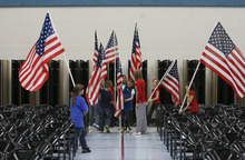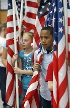 Third-graders at Falcon Ridge Elementary get ready for a flag presentation where Gove