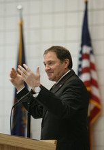 Governor Gary R. Herbert illustrates his point about moving education forward with th