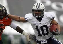With no BYU quarterback graduating this year, former Cougar Max Hall tossed the ball around to receivers such as Di Luigi and McKay Jacobson.