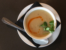 Where Eatery 1025 excels is in the art of seasonal soup making. A roasted cauliflower-and-rosemary soup ($4 cup, $6 bowl) had depth and heartiness and also a delicious house-made taro root chip for garnish. Last fall, the chilled beet-and-cucumber soup received rave reviews and a Tribune write-up.