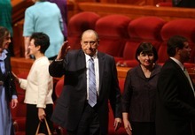 "Death comes to all mankind. It comes to the aged as they walk on faltering feet. Its summons is heard by those who have scarcely reached midway in life's journey. At times it hushes the laughter of little children," said the 84-year-old leader, considered a "prophet, seer and revelator" by the 14 million-member Church of Jesus Christ of Latter-day Saints. "But we know that death is not the end."