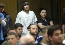Ogden • About 60 supporters of Matthew David Stewart met here Thursday and decried drug raids like the one that led to the shootout at his home.