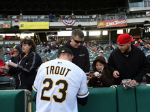 Bottom line: You'd better catch this guy while you have a chance. Trout has rewarded the fans attending the team's home-opening series against Tucson, which continues tonight at Spring Mobile Ballpark, with something special in each game.
