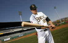 The outfielder who took a circuitous route to Salt Lake City in the Los Angeles Angels' system is living up to all of his advertising through 11 games with the Bees this month. He's batting .435 with at least one hit in every game. If that leaves him 50 games shy of Joe DiMaggio's Pacific Coast League-record 61-game hitting streak of 1933, well, give him time.