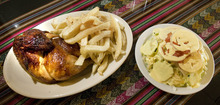 Originating in 1950's Lima, pollo a la brasa is Peruvian roasted chicken, and boy it's good. At El Rocoto you can order your pollo by the quarter ($5.85), half ($8.85) or full bird ($15.85). Orders come con papas y ensalada that's a side of thick french fries and dressed green salad to you and me. Whatever size you choose, this mild chile-rubbed chicken is some of the best I've tasted.