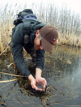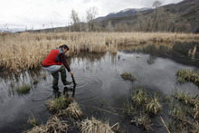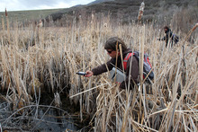 Trater works with biologists from the Utah Division of Wildlife Resources (DWR) along the middle Provo River to monitor the population of the native Utah frogs.