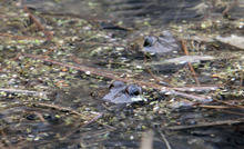 Hearing frogs may be pleasant, but finding them often is not. They blend in with their natural surroundings and, because they can absorb oxygen through their skin, can remain submerged as long as they have enough in their blood.