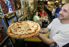 The hand-thrown pizza ($2.50, by the slice; $7.25, 12-inch; $10.99, 18-inch) featured a nice, crispy crust, which was then covered up with lots of processed and canned toppings such as limp, lukewarm mushrooms.