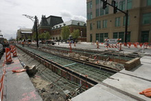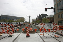 Other major construction at the moment is atop the new North Temple viaduct which opened to motor traffic last year. TRAX will have a station on top of that bridge, which will connect via escalators and elevators to a FrontRunner commuter rail station beneath it.