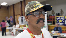 Close to 90 homeless families and veterans showed up Monday for the first-ever Ogden Homeless Stand Down at Catholic Community Services of Northern Utah. Catholic Community Services worked with the Veterans Affairs Health Care System in Salt Lake City to sponsor the Stand Down, the name typically used for events that connect homeless veterans with community services. "We decided to open it up for anyone who is homeless," said Marcie Valdez, director of the Ogden charity. "It's so difficult to just get through the day, let alone know where to go for help." About 90 families had visited through midafternoon, of those people 15 were veterans, she said. They learned about 20 community organizations that offer help, and received clothing vouchers, blankets, tarps, laundry soap, hygiene kits and bags of food, Valdez said. Pictured is Eugene Morris, a Vietnam War veteran.