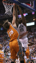 Jefferson scored eight points on 4-of-6 shooting during the fourth quarter, finishing with 18 points and a game-high 16 rebounds. During shootaround Tuesday morning, he called the matchup the biggest contest of his career, since he hadn't been to the playoffs since his rookie season in 2004-05 with Boston. Against the Suns, Big Al formed a Big Three with Millsap and Favors, and they pounded in a combined 57 points and 42 rebounds.