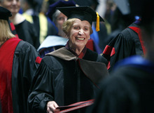 Also honored at Friday's commencement were two U. senior vice presidents, Lorris Betz and Jerilyn McIntyre, recipients of honorary doctorates. Both were two-time interim U. presidents heading off into retirement. McIntyre recently retired as president of Central Washington University.
