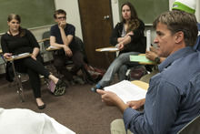 This first class has three veterans of the Iraq war and one Ely who served one deployment in Afghanistan and is still on active duty. Five are civilians, students interested in the topic for a variety of reasons.