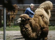 Another, read while senior camel Gobi raised his arthritic legs, said that contrary to popular thought, camels don't store water in their humps, which store fat. Water is stored in the walls of a camel's stomach, where it's released gradually before the next 50-gallon fill-up.