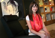 Mikell Stringham among the paintings of the artists she represents Wednesday March 30, 2011
