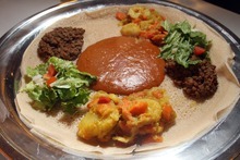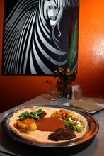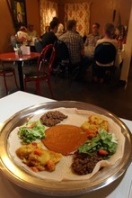 Serves a large selection of African foods, such as kitfo and tej wine, including vegetarian and meat selections. Combination plates served in family-style portions are your best bet.