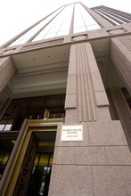 The plaque on the building at 60 East South temple naming identifying it as The World Trade Center at City Creek.