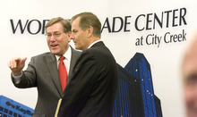 President and CEO of Zions National Bank and Chairman of World Trade enter Utah, Scott Anderson, and Bishop Gary E.Stevenson, Presideing Bishop of the LDS Church at the inauguration and open house of the World Trade Center at City Creek at 60 East South temple.