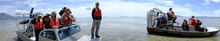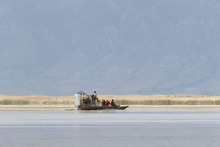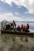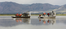 They gathered in airboats off the northeastern corner of the Great Salt Lake shoreline. Above, clouds jostled in the vast Utah sky.