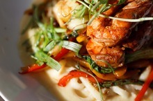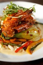The prawn entrée ($20) was the surprise hit of the night. Four prawns prepared with heads on (something I haven't seen since dining in Hong Kong) were well-spiced and served over a bed of udon noodles along with bell peppers and long beans. Fermented beans heavily dotted the dish, which helped deliver a depth of flavor, from earthy at the start to a final spicy kick at the finish.
