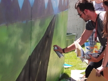 The big project is the Open Road Project, organized by students from Higher Ground Learning. It starts with a basic mural and is added to all day by anyone who comes along. Stencils are available, and spray paint can be purchased. (By the end of the day, the graffiti taggers kind of took it over.) And it's all being photographed in time-lapse, so you can see it change.