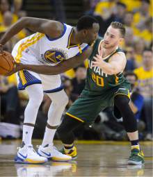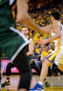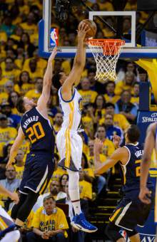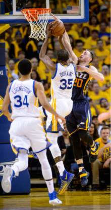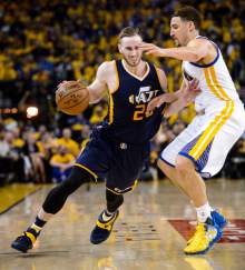 The Jazz forward waits patiently at halfcourt as the play develops, blows past a sleeping Russell and drives into the paint. He switches the ball to his left hand and slams it down over Hibbert.