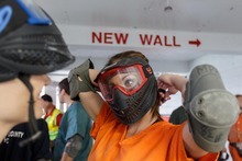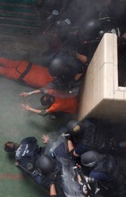 Officers shoot pepper balls filled with baby powder rather than pepper. Most of her classmates jump into scenario after scenario.