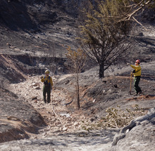 "We're trying to hang on to what we've been able to accomplish today. A 'burnout' [controlled burns of vegetation to deny flames room to grow] we did last night on the north part of the fire went really well," said Interagency Fire Center spokesman Mark Wilkening. "Our primary focus right now is to mop up any hot spots, knocking down new flare-ups and extinguishing them as they occur."