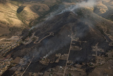 Evacuee Carrie Choquette was watching her six children and a young niece and nephew when the fire started on the edge of her property, she said. It soon spread to two trees as she rushed to escape. As she left, she thought maybe the flames were burning away from her home, where her chickens, goats and two cats had to be left behind.
