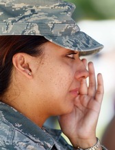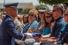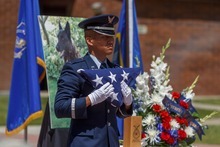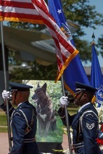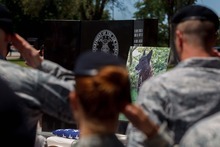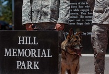 Tim McCarty, commander of the 75th Air Base Security Force Squadron at Hill, presented the dogs' handlers with certificates before a crowd of military personnel, families and local authorities at the base's Memorial Park.