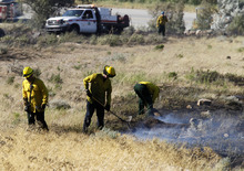 Ogden • Fire officials believe a 12-acre fire that burned in the mouth of Ogden Canyon Tuesday morning was set intentionally.