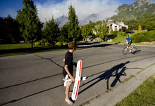 Craig Skidmore, a resident of The Alpine Cove subdivision in Box Elder Canyon, said he went home Tuesday afternoon after his wife called to say she could see a fire approaching. The couple were casually getting some things together, when the barn next door went up in flames that he said were 100 feet high.