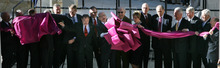 When it came time to cut the mall's pink ribbon, Monson, flanked by Utah dignitaries, cheered, "One, two, three, let's go shopping!"