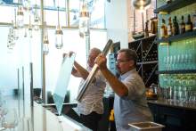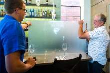 General Manager Andrew Cliburn and owner Joel LaSalle tear down the Zion Curtain around their restaurant bar at Current Fish & Oyster in Salt Lake City on Saturday, July 1, 2017. A new law goes into effect Saturday, which now allows restaurants options other than the 7-foot opaque barrier intended to block children from seeing drinks being mixed. Restaurants can choose to keep the "Zion Curtain"; create a 10-foot buffer from the bar where minors are not allowed; or build a half-wall or railing, at least 42 inches high, that creates a delineation between the dining and liquor-dispensing areas.