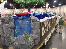 The Draper River View Stake's float for the Days of '47 Parade features three waterfalls - two in front and one in back. The quest